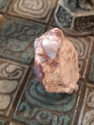 This is an Opal. I've been told that the red part is also Opal, there is Fire Opal mixed in.