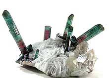 Can be many colors including red, black, green, colorless, pink, bi and tri colored specimens are not uncommon.
