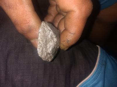 It's magneticlooks a little gold and has small zig zag lines or spider veins in it...and is very heavy